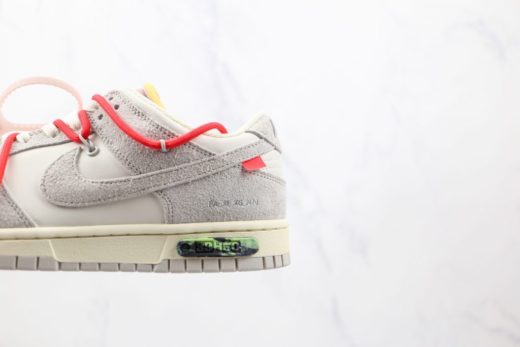耐克DUNK板鞋麂皮灰白红色OW联名黑标“33:50” Off-White x Nike Dunk Low’50’ OW最新企划联名新作,融合多重OW新logo展示全新品牌风貌多材质组合搓揉带来极佳视觉体验红色鞋带点缀灰白麂皮基调上更合适夏日季节穿搭,原厂原档案开发原盒原标原厂头层皮料官方厚鞋舌设计做工细节全方位比对原鞋。