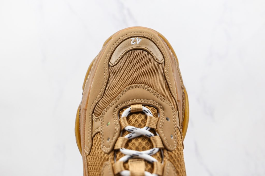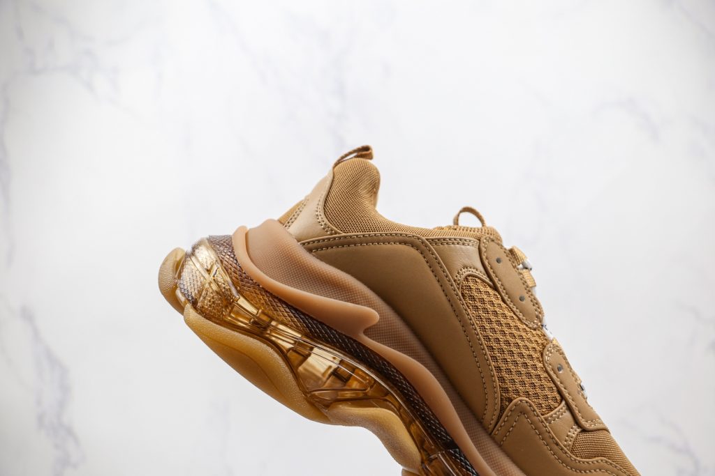 巴黎世家小麦色咖啡咖色气垫Balenciaga Triple S1 9官方发售气垫版本官方纯原版本,正确字体电绣、粗细、位置、大小正确侧边TPU透气孔匹配意产原版正确气垫分离大底,TPU软底原版一致”Balenciaga”大底LOGO 立体感十足原厂皮料水洗做旧采购原厂网纱。