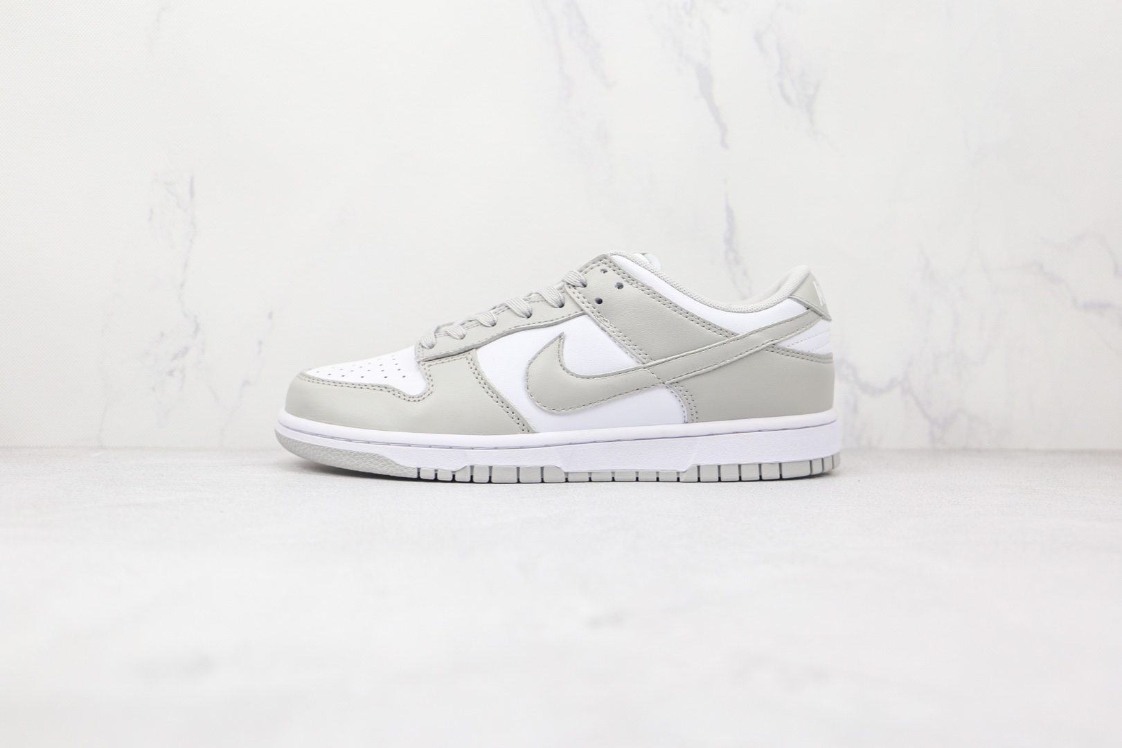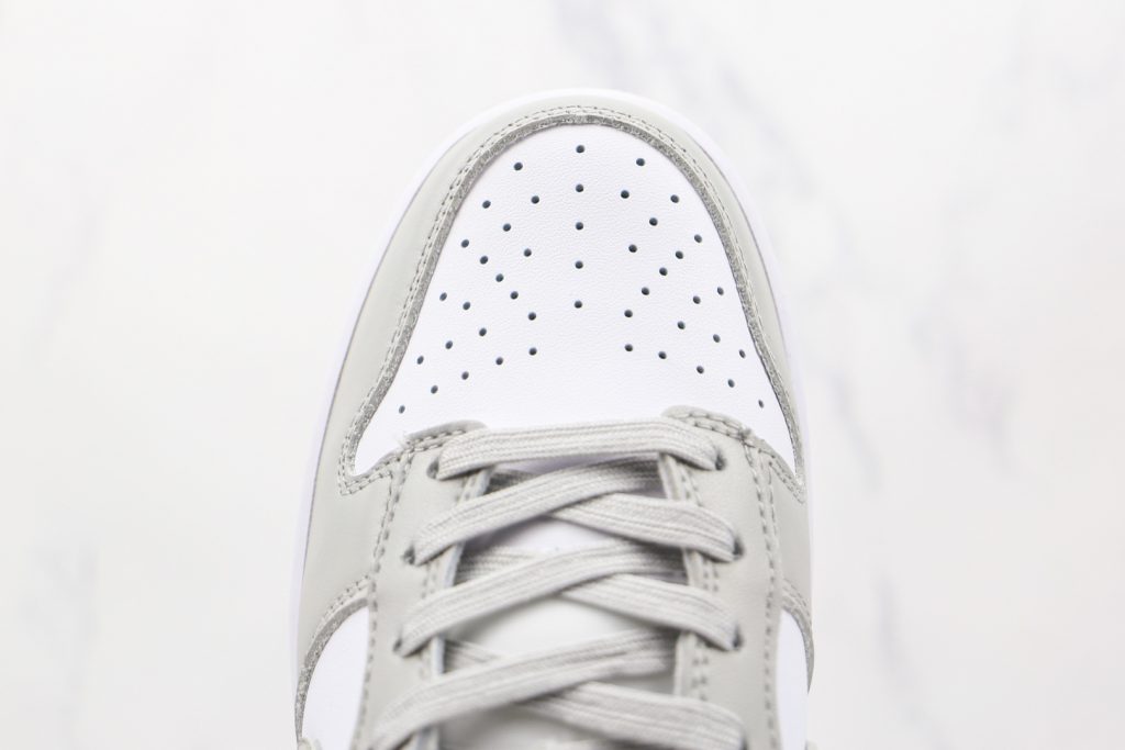 耐克Dunk板鞋白灰色低帮Nike Dunk Low这款Nike Dunk Low穿着白色和灰色颜色组合。首先,我们的底座上有白色皮革它落在面板和穿孔的脚趾上,接下来浅灰色的装饰点缀在Swoosh鞋跟护目镜和橡胶外底上。