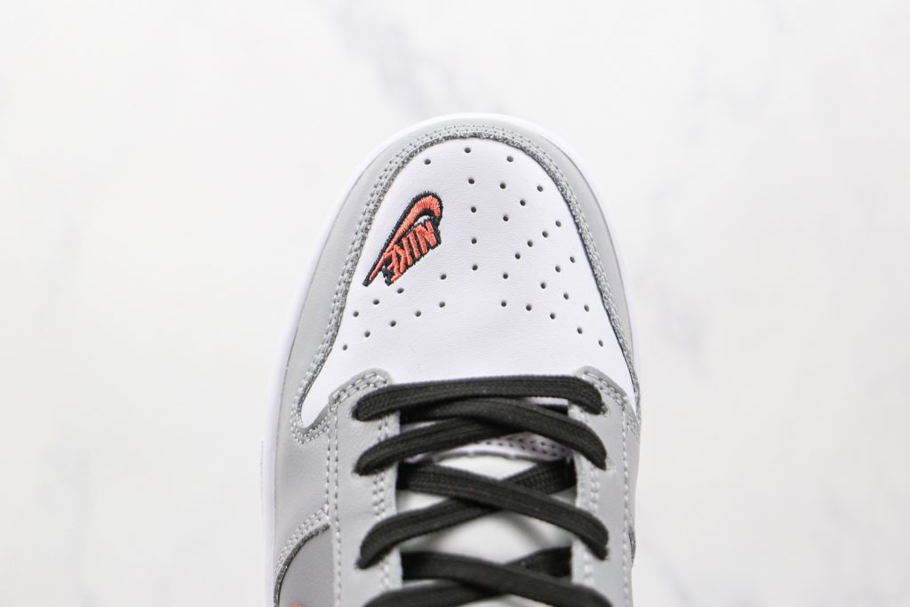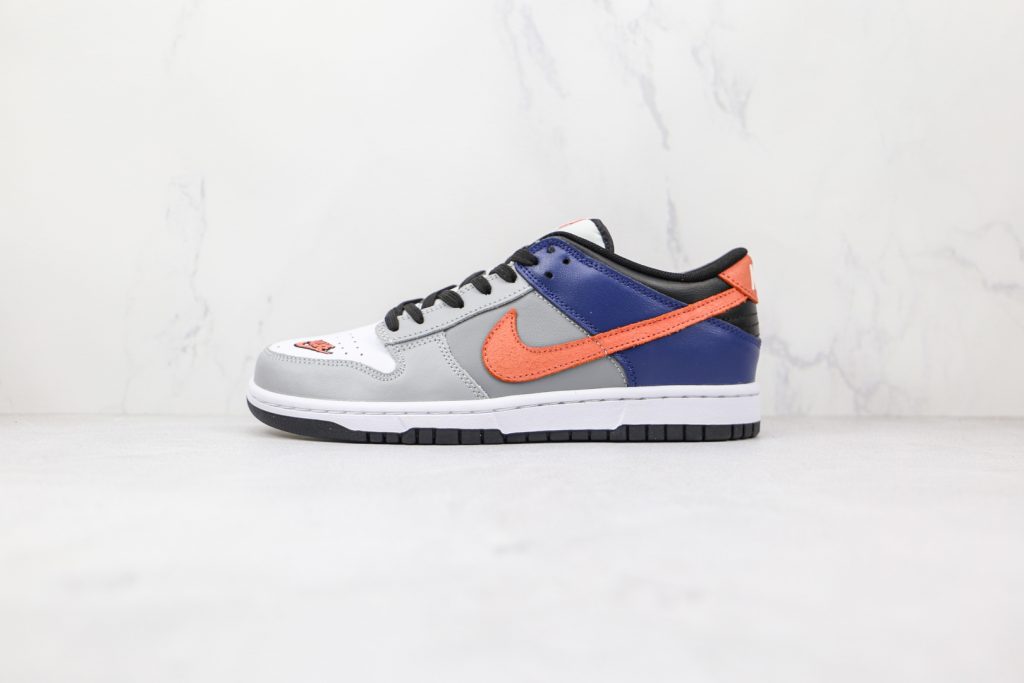 耐克DUNK灰蓝黑橙色彩色拼接Nike员工专属配色,Dunk Low “EKIN”整体以搭载Dunk Low 的外形采用了浅灰色、白色、黑色为主要配色。鞋面由传统皮革材料制成,从脚趾到脚后跟都带有灰色到黑色的光泽,鞋舌和 Swoosh 以及鞋跟的烙印、脚趾套都带有类似橙色的细节,后跟则带有 “EKIN” 标志。在鞋子内部鞋舌的反面拼写一排英文字母以此表达对员工们的敬意和感谢并且鞋垫上还贴有城市图标细节。
