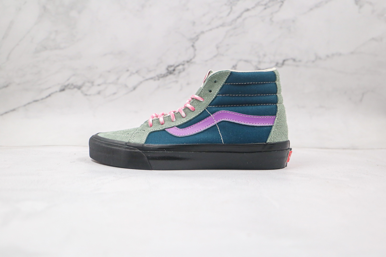 万斯Vans深绿色紫色长麂皮Vault OG SK8-Hi LX以还原品牌初期原貌的鞋型、高端的材质、讲究的细节和更舒适的脚感。整个鞋面覆盖上深绿色呈现并在鞋头后跟用上更加高级的长绒麂皮面料,侧边条则以紫色搭配鞋带使用紫白两色交叉编织而成的鞋带黑色大底包边更能适合鞋身的整体风格。