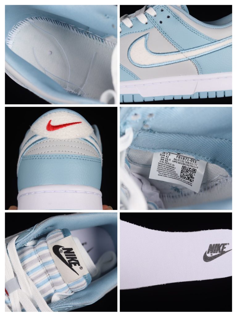 采用淡蓝色皮革底座,搭配灰色覆面、Swoosh标志、鞋带和中底。灰色网眼鞋舌、衬里和橡胶外底完美融合。