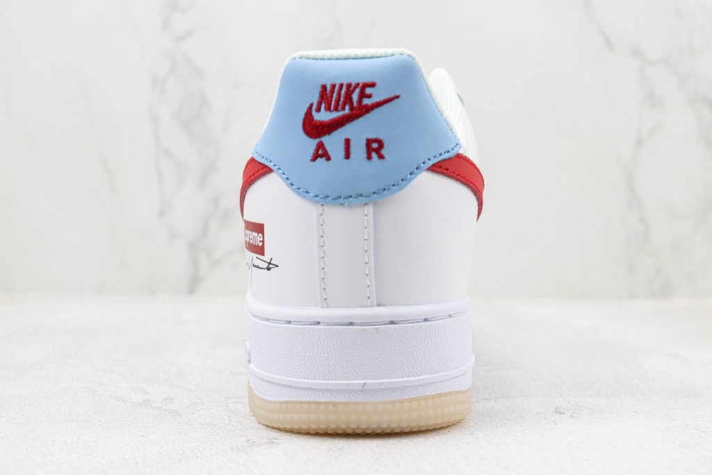 耐克Nike空军一号Supreme联名迷你勾双勾AF1签名款白蓝红色Air Force 1 ’07 Low低帮运动鞋休闲鞋,折边针车,工艺难度大。原楦头原纸板,原装鞋盒,定制五金配件,内置全掌气垫,原厂鞋底。