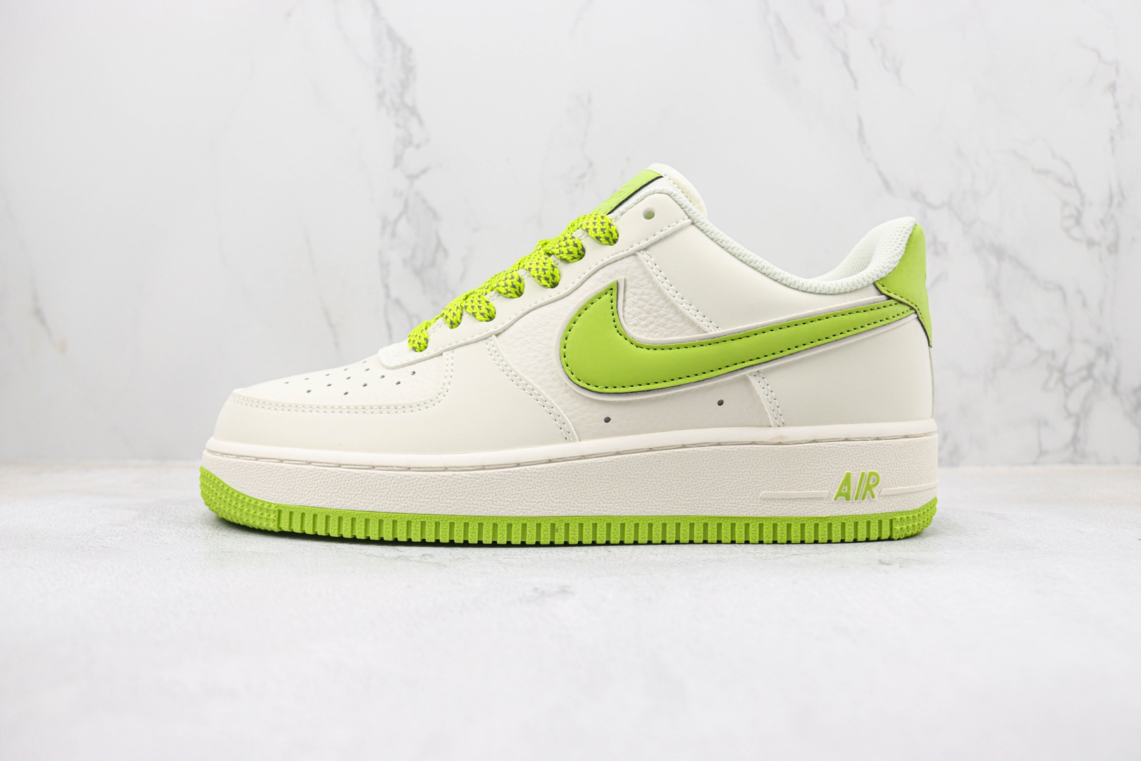 耐克空军一号白绿色清新绿Nike Air Force 1 ’07 Low,原楦头原纸板,纯正空军版型。专注外贸渠道,全掌内置蜂窝气垫,原盒配件,原厂中底钢印、拉帮完美。