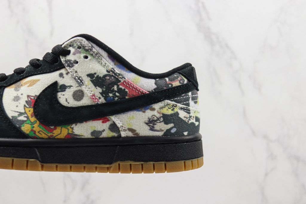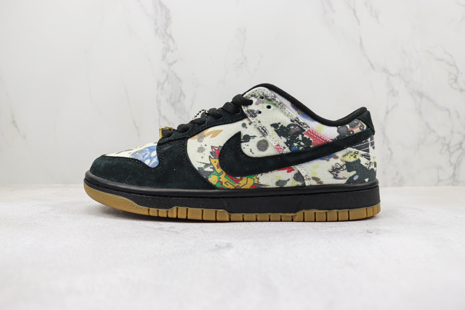 耐克Nike SB Zoom Dunk Low黑彩涂鸦渲染板鞋系列经典百搭休闲运动板鞋,升级原厂更新数据版型,采用台产固色猪巴革组合3D打印帆布鞋面材质。原厂中底布正确印刷,鞋垫嵌EVA缓震物料及Air Zoom气垫,原数据开发耐磨RB橡胶外底。