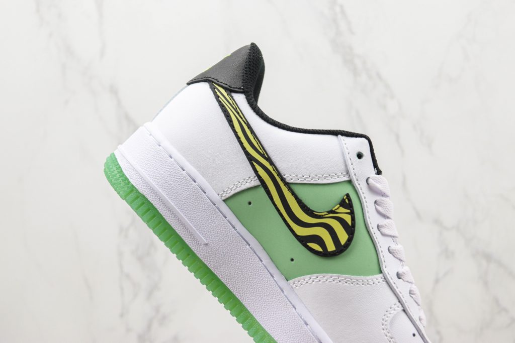 耐克Nike Air Force 1’07 Low低帮空军一号白绿斑马波浪勾板鞋实拍图如下▼