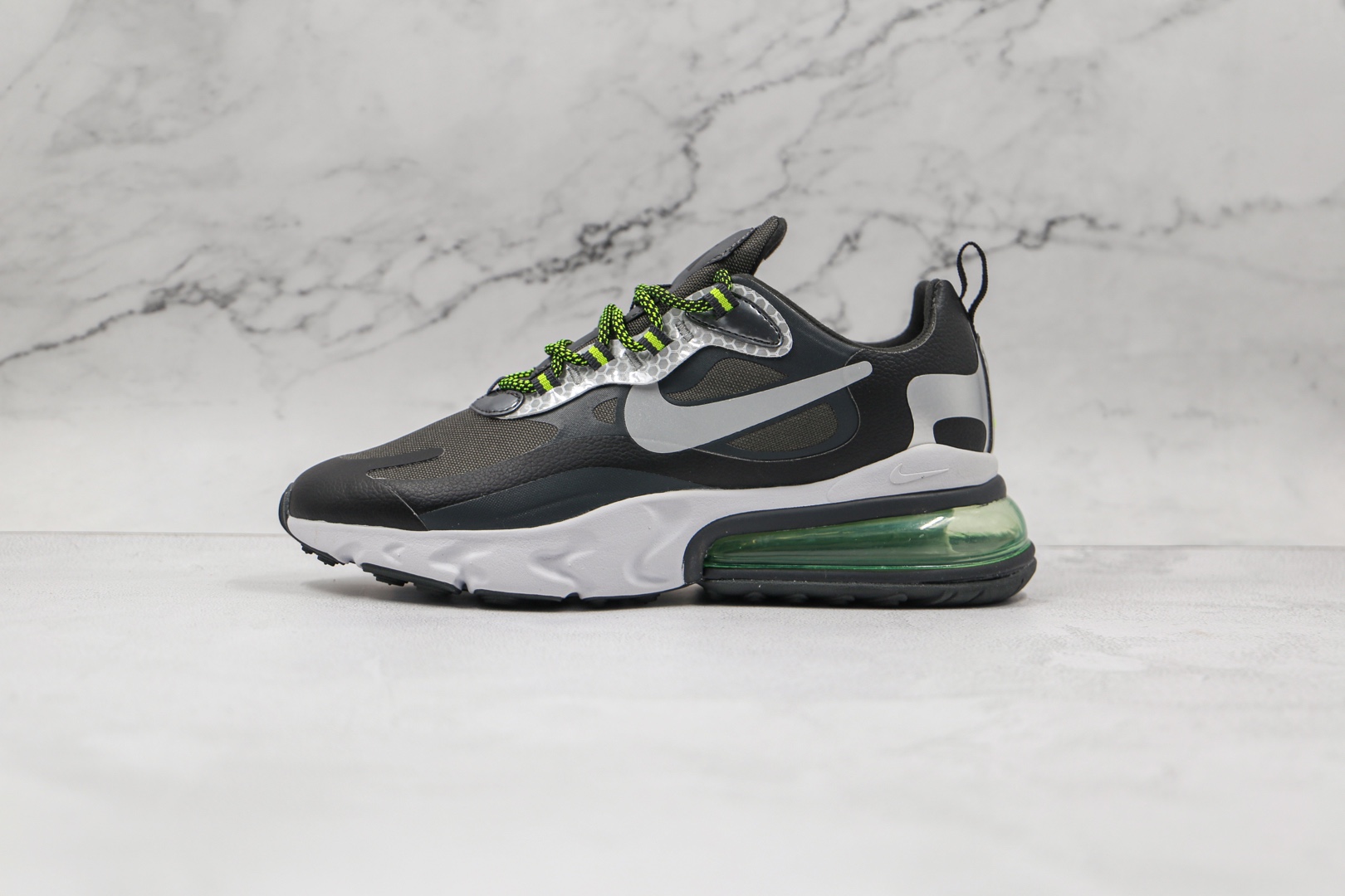 耐克Nike Air Max 270 React纯原版本半掌气垫Max270赛车系列黑绿银色内置真小潘气垫 货号:CT1647-001