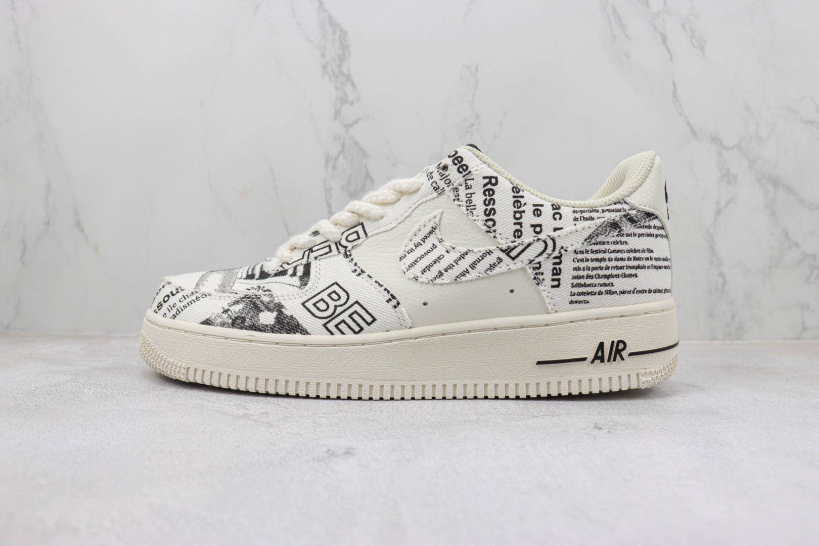 耐克Nike Air Force 1 Low报纸英文印花涂鸦AF1低帮空军一号休闲运动板鞋,全鞋身采用帆布满印图案工艺,主题80年代黑白电影风格。原装级别,原楦头原纸板,打造纯正空军版型,全掌内置蜂窝气垫。