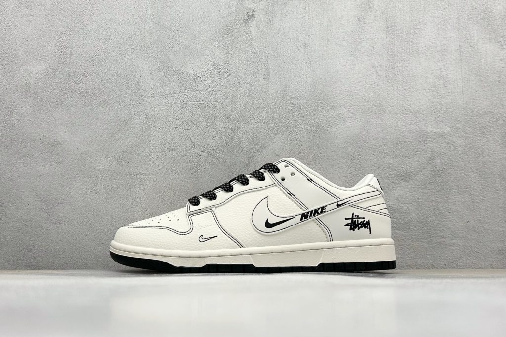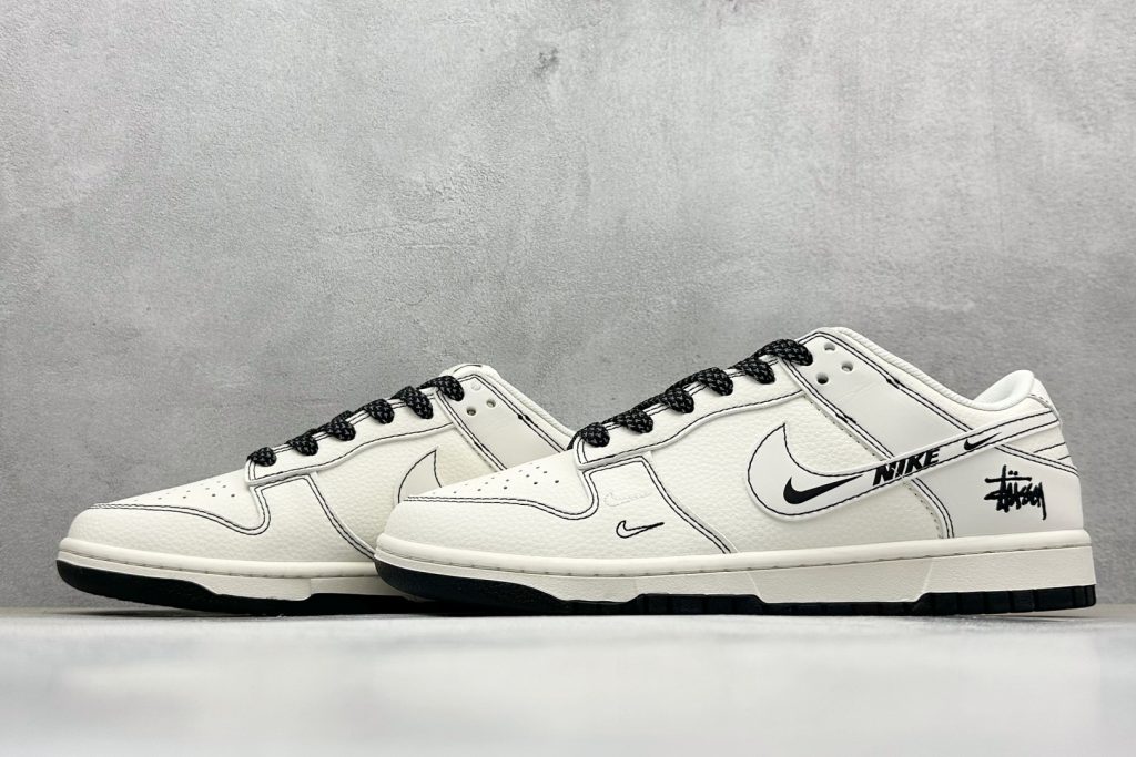 耐克Nike SB Dunk Low斯图西联名米黑小双勾地板休闲板鞋实拍图如下▼