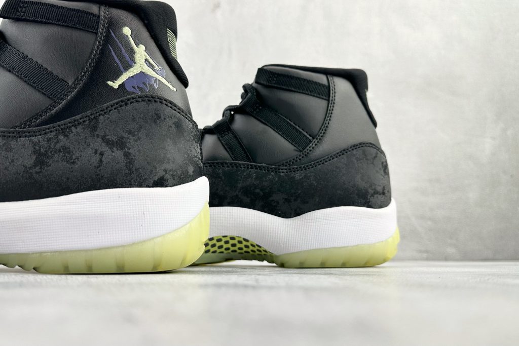 乔丹Air Jordan 11 “Sneaker School”荧光绿黑AJ11万圣节限定高帮篮球鞋实拍图如下▼