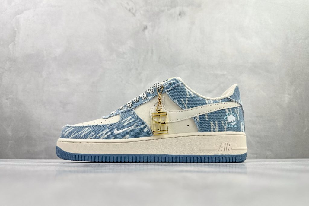 耐克NIke Air Force 1 ’07 Low蓝白色AF1空军一号联名MLB丹宁牛仔低帮休闲运动板鞋,原楦头原纸板,打造纯正低帮空军版型,专注外贸渠道。全掌内置蜂窝气垫,原盒配件,原厂中底钢印、拉帮完美。
