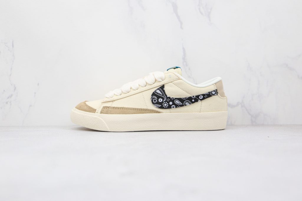 耐克开拓者低帮米色腰果花NIKE Blazer LOW 77 VNTG开拓者低帮板鞋,原盒原标半码、双层中底布做工精细针车走线全部按原鞋。