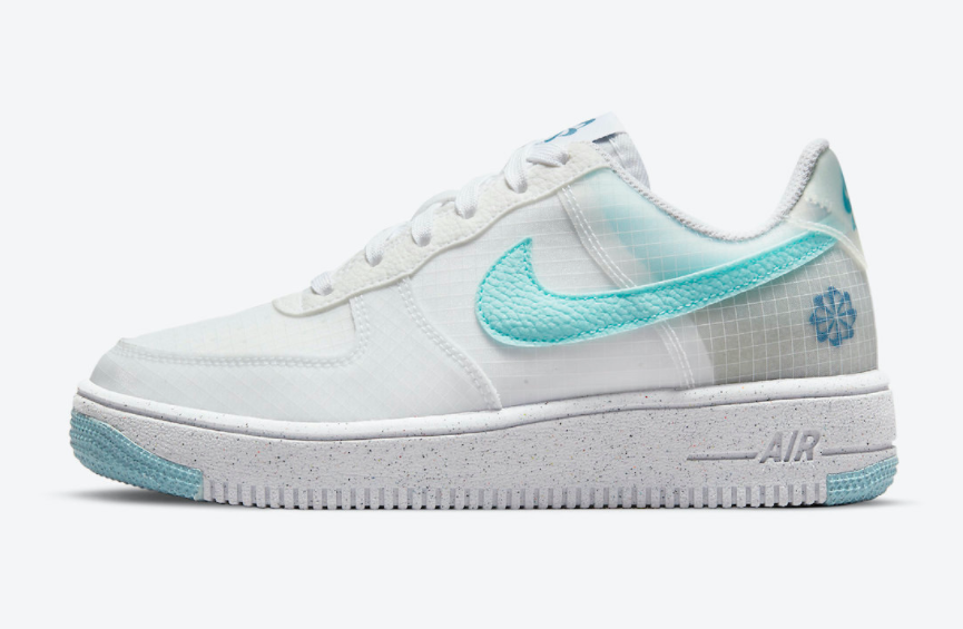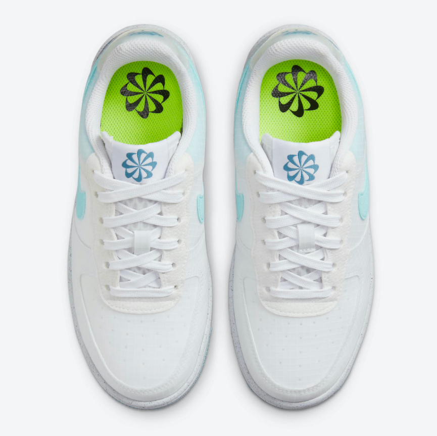 白色鞋身搭配侧身Tiffany 蓝Swoosh等细节,视觉效果清爽简约。