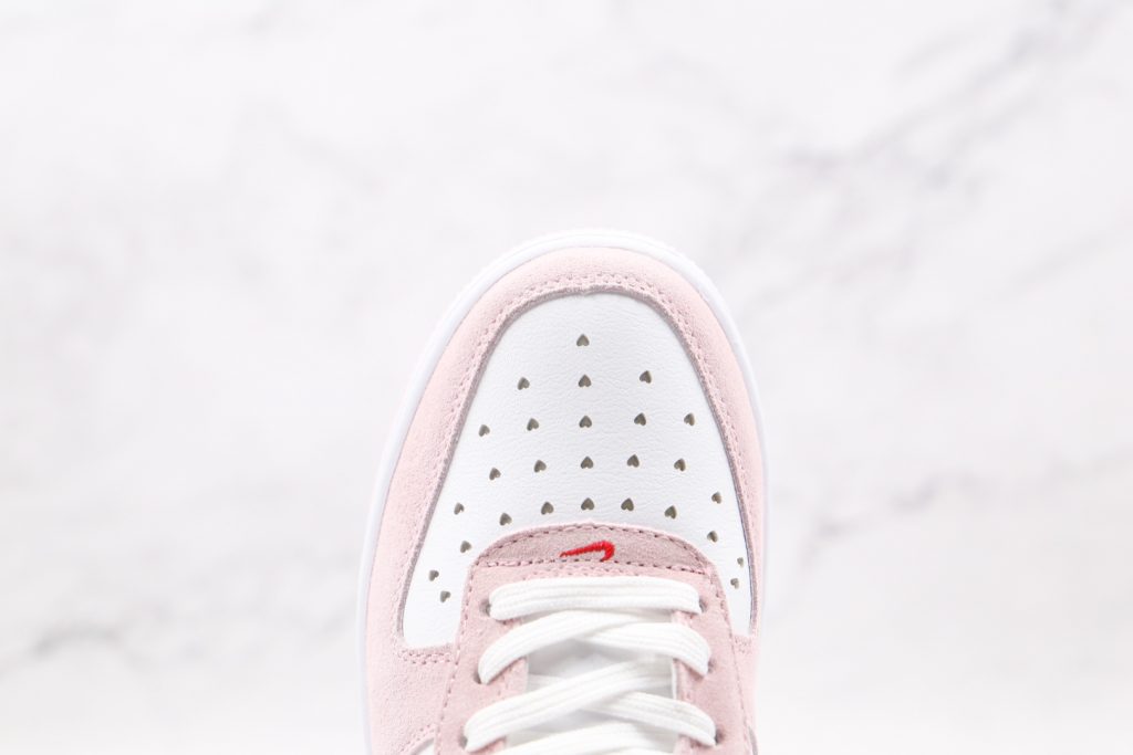 耐克空军一号粉红情人节Nike Air Force 1 ‘07 QS权志龙同款,该鞋款采用大学红和郁金香粉配色凸显出俏皮可爱的节日气氛左右脚鞋舌的图案上均搭配按扣设计,象征着你与这款经典球鞋之间的浪漫情书,此外后跟处的Nike Air品牌logo则以小号心形标志点缀诸多匠心细节无不营造浪漫十足的节日体验。